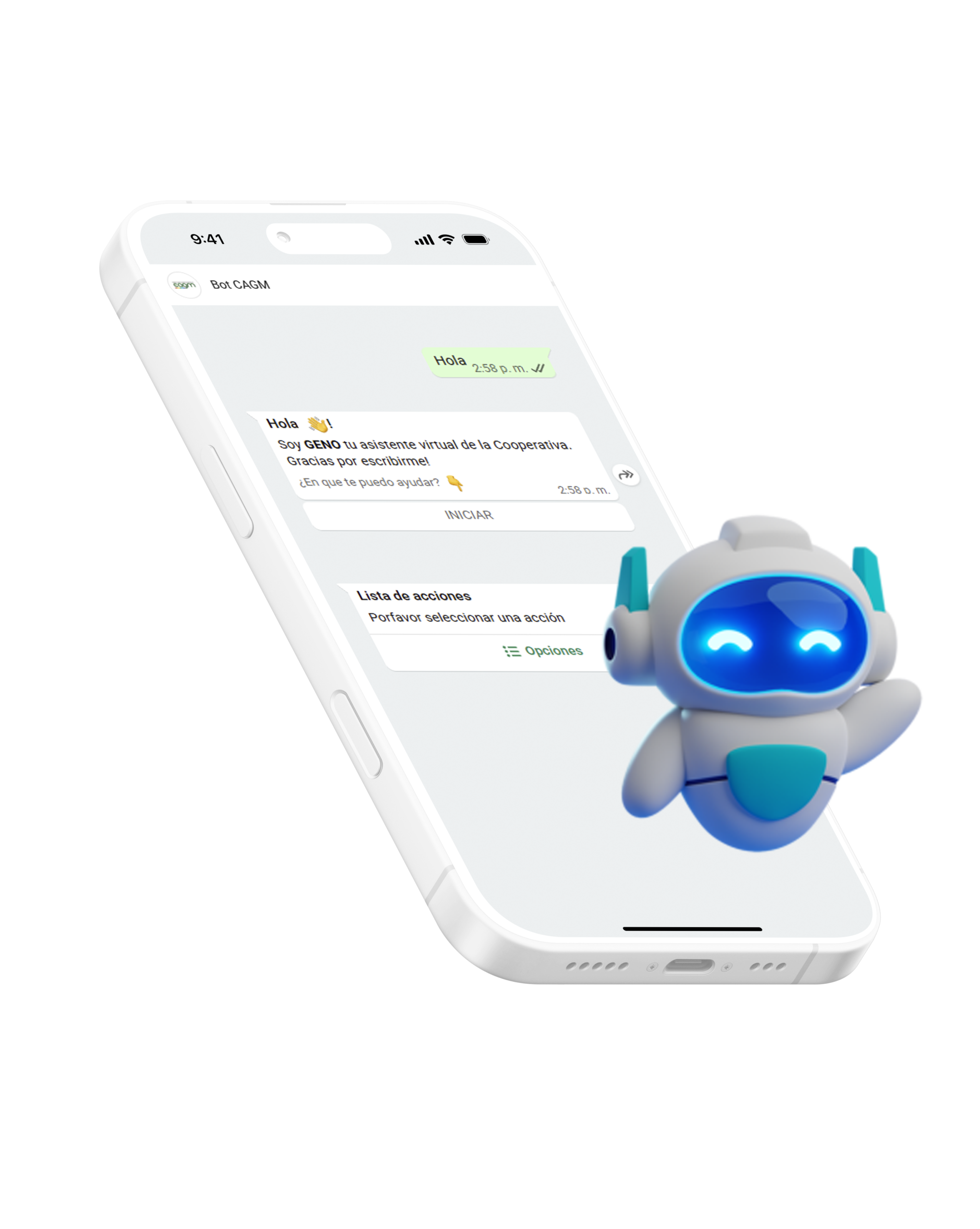 Con GENO nuestro Asistente Virtual podés acceder a la Información de tu cuenta a través de Whatsapp de manera rápida y sencilla.